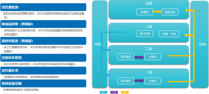 用AGV調度系統(VConn)完成物料計劃下發,現場叫料之間的系統閉環,考慮到異常送料需求,系統保留人工呼叫接口,可以快速與第三方系統或設備對接