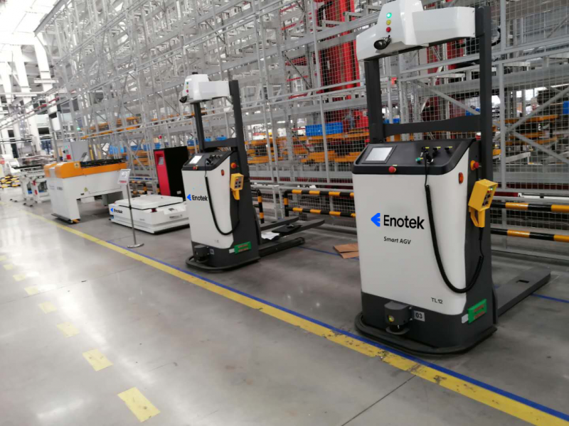 項(xiàng)目中除應(yīng)用了安歌科技自主研發(fā)的堆垛機(jī)外,同時(shí)將AGV大量的運(yùn)用到了工廠內(nèi)的生產(chǎn)流程中,擔(dān)任著物流搬運(yùn)的重要角色。
