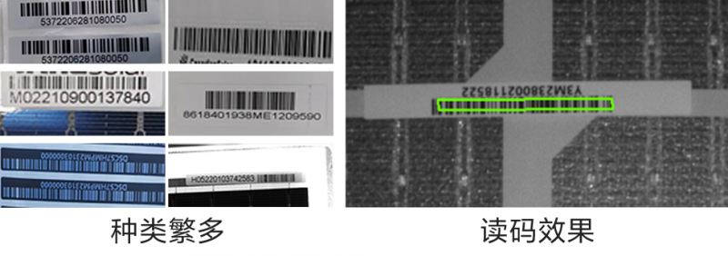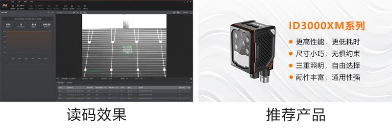 需求:電池片串焊排版后,匯流條處會貼附標(biāo)簽碼用于質(zhì)量追溯,需要透過一層毛玻璃,及一層EVA膠膜讀取,讀碼后實現(xiàn)至MES系統(tǒng)對接。