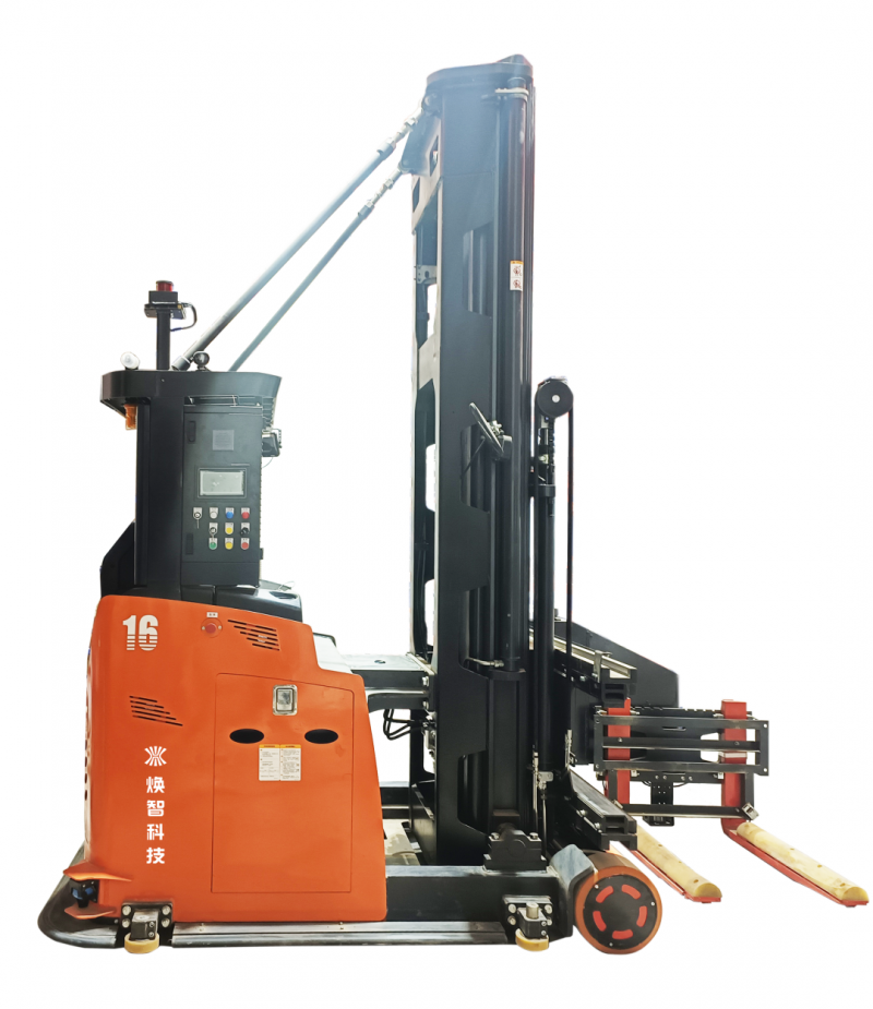 三向堆高式機(jī)器人采用先進(jìn)激光SLAM導(dǎo)航技術(shù),貨叉可以側(cè)移和180°旋轉(zhuǎn),可精準(zhǔn)定位并叉取貨物,實(shí)現(xiàn)窄巷道內(nèi)、地面到貨架、地面到地面等多種模式。