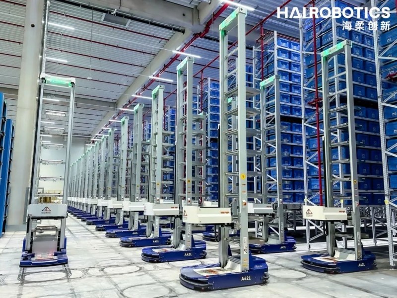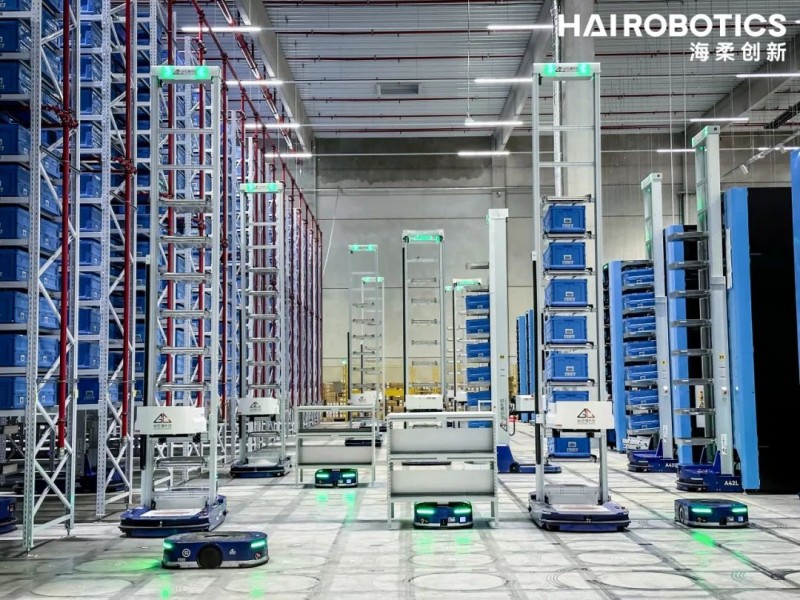 海柔創(chuàng)新的HaiPick System 2 超多形態(tài)混存揀選方案,包含箱式倉儲機器人(Automated case-handing mobile robot,簡稱ACR)、大載重潛伏式頂升機器人(Autonomous mobile robot,簡稱AMR)、HaiQ智慧倉儲管理平臺和HaiStation多功能工作站,可實現(xiàn)大中小件貨物同場存儲與一站式揀選,精準地滿足谷倉德國新倉的需求。