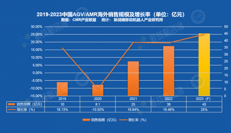 圖表:2019-2023中國AGV/AMR海外銷售規模及增長率