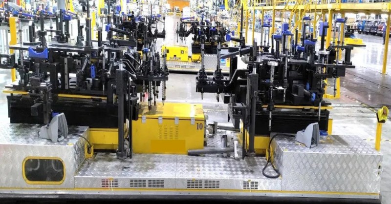 在該項目中,新松底盤合裝移動機器人同時肩負兩大日系品牌汽車的底盤合裝作業任務,機器人運用動態隨行技術,實現與車身的自主跟隨和同步,可以根據用戶工藝需要對機器人線路靈活調整,進一步提升生產柔性,滿足日系車廠嚴謹的工匠精神和對生產設備的嚴格要求。