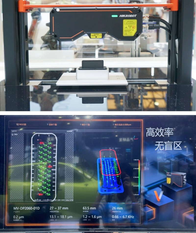 采用海康機(jī)器人自研的程控條紋光傳感器進(jìn)行采圖,對車漆表面的顆粒,漆疤、劃痕、氣泡、針眼等缺陷進(jìn)行在線全檢,最小可實(shí)現(xiàn)0.2mm的缺陷檢測,借助機(jī)械臂的柔性,檢測可達(dá)性區(qū)域幾乎覆蓋100%車身。