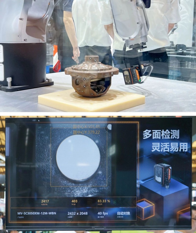 集成像、算法、存儲(chǔ)、通信于一身的SC3000X系列視覺傳感器,體積小巧,外觀緊湊,安裝更加靈活,內(nèi)部嵌入了讀碼、有無、正反、測量、識(shí)別和計(jì)數(shù)等防錯(cuò)檢測算法,搭配機(jī)械臂對鑄造件的各個(gè)面進(jìn)行碼信息、字符信息的檢測。