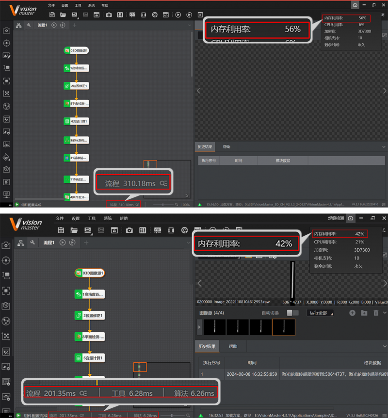 從下面兩個項目檢測案例中,可以明顯看到軟件升級后性能的顯著提升。在內(nèi)存利用率方面實現(xiàn)了最高23.21%的降幅,大大優(yōu)化了資源管理;在流程耗時上,最高減少了70多毫秒的處理時間。這些優(yōu)化措施共同提高了現(xiàn)場工作的整體效率,確保了操作的流暢性和響應(yīng)速度,為用戶帶來了更加高效和穩(wěn)定的使用體驗。