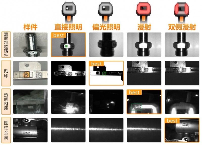 IDH9000集成直接照明、偏光照明、漫射、雙側(cè)漫射四種照明方式,打破打碼材質(zhì)、工藝、外形、表面處理等限制,準(zhǔn)確識(shí)別傳統(tǒng)設(shè)備無(wú)法識(shí)讀的目標(biāo),輕松面對(duì)各類材質(zhì)和場(chǎng)景。