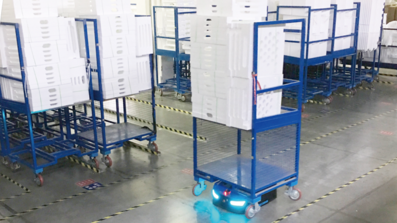 國內(nèi)某知名物流自動(dòng)化集成企業(yè),在一大型物流輸送項(xiàng)目中采用牧星潛伏車和智能調(diào)度系統(tǒng),實(shí)現(xiàn)智能工廠自動(dòng)化搬運(yùn)。