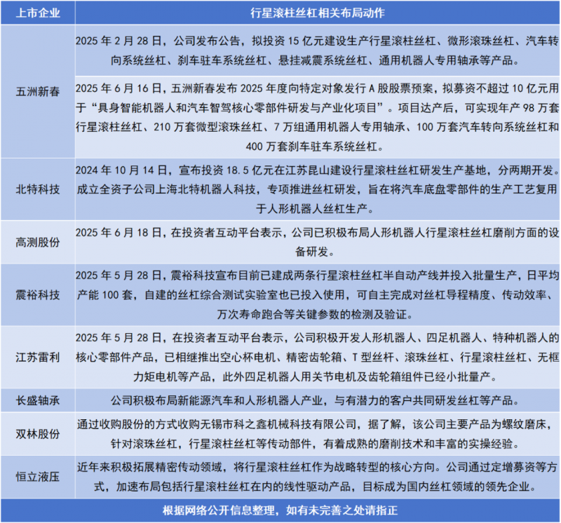 近日,五洲新春、雙林股份、震??萍肌⒈碧乜萍?、長盛軸承等多家零部件上市公司都在加速布局轉型行星滾柱絲杠領域,相關企業合計規劃投資金額已超過60億元。