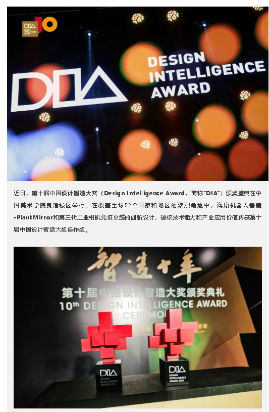 DIA十年,屢獲嘉獎 | ??禉C器人兩款產品再獲第十屆中國設計智造大獎