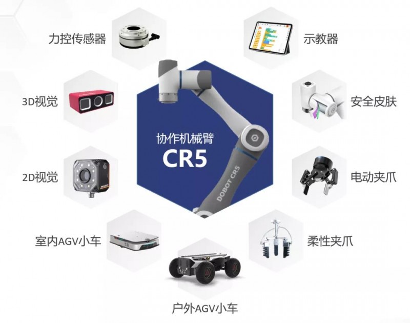 作為計(jì)劃的一部分,越疆推出了展翅、凌云1.0、凌云2.0三大套件組合,套件包括CR5協(xié)作機(jī)器人、示教器、安全皮膚、2D和3D視覺,柔性夾爪、電動(dòng)夾爪、力傳感器、戶外/室內(nèi)GV小車等基礎(chǔ)單元,適配工業(yè)、商業(yè)、醫(yī)療、農(nóng)業(yè)等多種場景應(yīng)用創(chuàng)新方案的搭建。