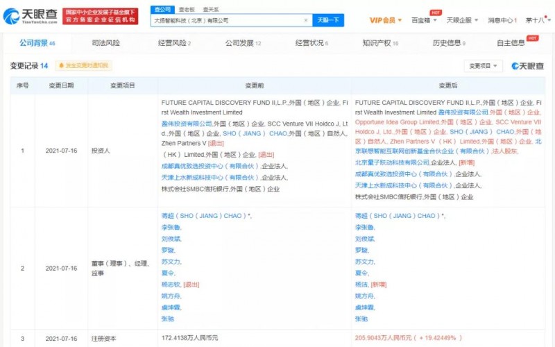 天眼查App顯示,近日,倉儲物流自動化解決方案服務商“Syrius炬星”關聯公司大揚智能科技(北京)有限公司發(fā)生多項工商變更,注冊資本增至約205.9萬人民幣,增幅超19.42%;股東新增字節(jié)跳動關聯公司北京量子躍動科技有限公司等。