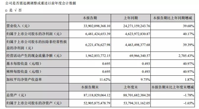 7月24日,海康威視發(fā)布2021年半年度報(bào)告。在報(bào)告中顯示:報(bào)告期內(nèi),公司實(shí)現(xiàn)營業(yè)總收入339.02億元,比上年同期增長39.68%;實(shí)現(xiàn)歸屬于上市公司股東的凈利潤64.81億元,比上年同期增長40.17%。公司2021年上半年整體毛利率為46.30%。