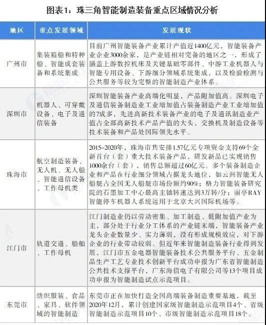 珠三角地區(qū)的智能制造裝備業(yè)主要分布在廣州、深圳、珠海和江門等地。其中,廣州市是國內(nèi)最大的大中型集裝箱船和特種船建造基地;江門市是未來軌道交通行業(yè)領(lǐng)域的重要基地,珠海市依托珠海機(jī)場而建的珠海航空產(chǎn)業(yè)園涵蓋了航空制造業(yè)、服務(wù)業(yè)和臨空產(chǎn)業(yè),是廣東省發(fā)展通用航空制造、維修及運(yùn)營服務(wù)產(chǎn)業(yè)的唯一載體,已形成了“珠海航展”的知名會(huì)展品牌;深圳市正著力建設(shè)華南地區(qū)數(shù)控系統(tǒng)技術(shù)研究開發(fā)中心,大力發(fā)展工業(yè)機(jī)器人和機(jī)械手的研發(fā)與生產(chǎn)。