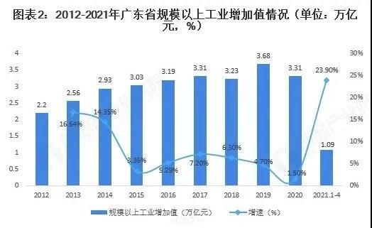 2021年1-4月,廣東規(guī)模以上工業(yè)增加值1.09萬億元,同比增長23.9%,兩年平均增長5.5%。