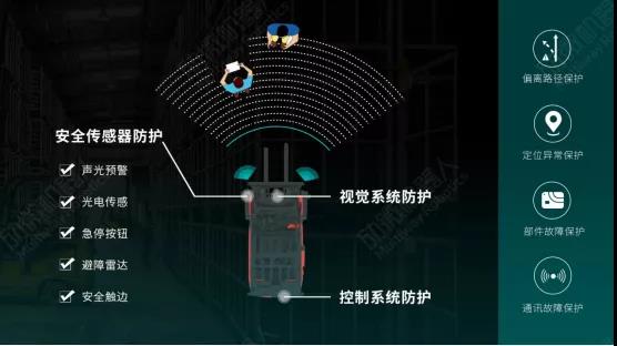 平衡重式無人叉車MW-E系列安全系統(tǒng)采用安全傳感器、算法控制系統(tǒng)、視覺系統(tǒng)等多重防護(hù)去提升車輛安全,即從人體工程學(xué)等多方面去考慮人機(jī)交互場景的安全性,又從無人叉車系統(tǒng)、機(jī)械等方面去考慮,360°全方位立體防護(hù),讓無人叉車作業(yè)安全更具保障。