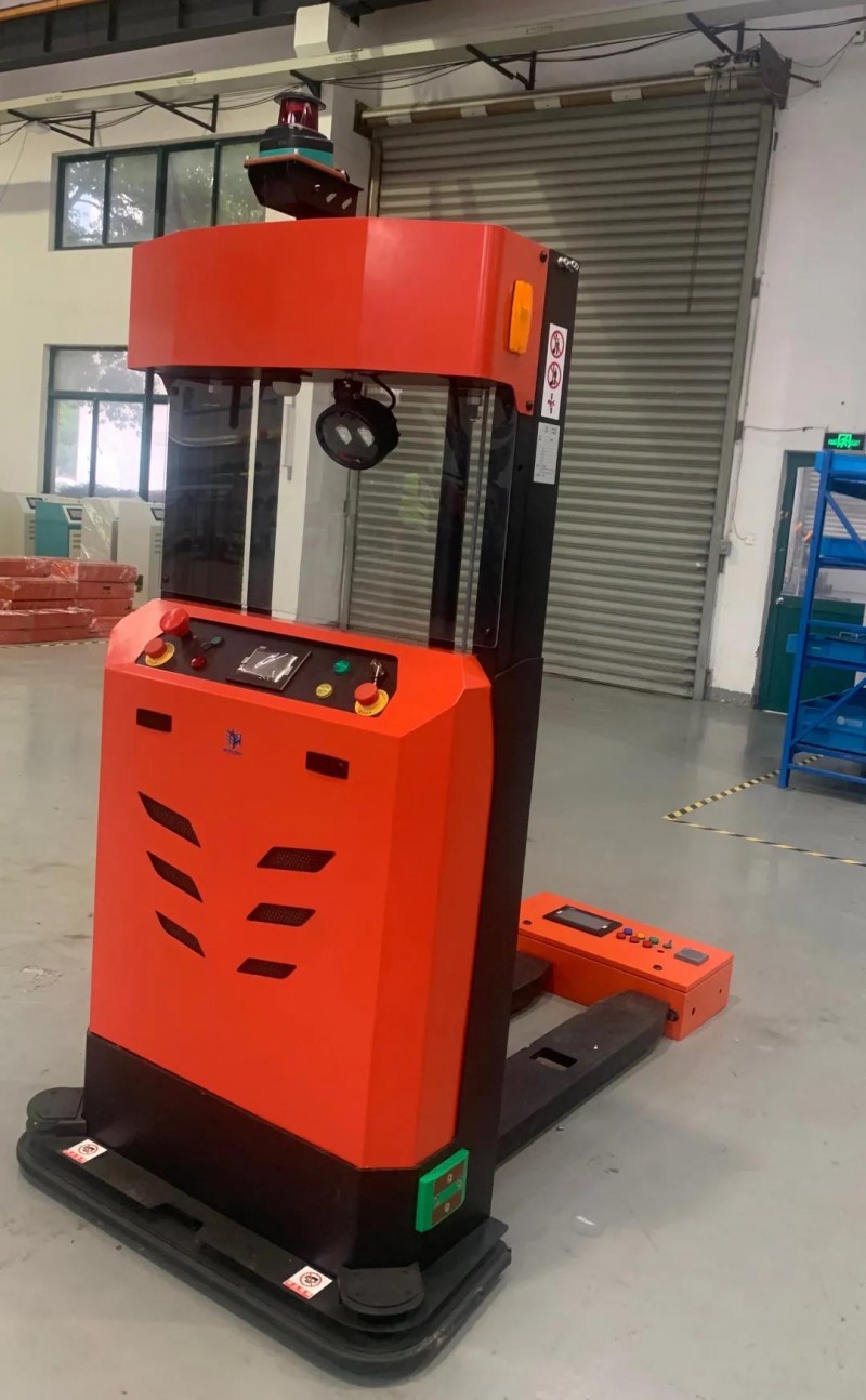 窄通道三向AGV外,在一些不需要高位存儲的場景,AGV廠商們與傳統的叉車廠商合作,通過對車體小型化、輕量化的設計,減小車體的轉彎半徑,推出了窄通道前移堆垛AGV,這類產品的舉升高度一般在1.6m左右,工作通道在2m左右。主要面向線邊運輸、低位上料、倉儲管理等場景應用。