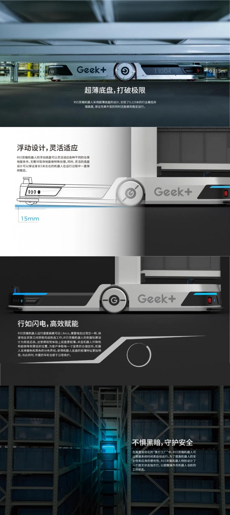 核心提示:RS5貨箱機器人憑借著超薄底座、更窄機身以及人性化的暗夜安全燈等一系列獨特設計獲得評審青睞。