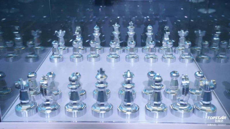 其中,結(jié)合中國博覽會的國際特色和廣州地標,還展示了由五軸聯(lián)動數(shù)控機床加工而成的廣州塔小蠻腰和國際象棋金屬模型,凸顯了五軸聯(lián)動數(shù)控機床的高難度異形精密零件加工工藝,讓觀眾眼前一亮。