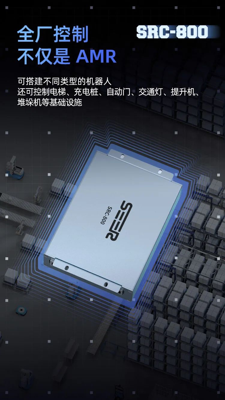仙工智能不止步于此,為了客戶更好的使用體驗,SRC 系列核心控制器的產品線不斷更新迭代,超級新品SRC-800 不僅可以控制各類移動機器人,還能控制工廠應用場景中的提升機、堆垛機、自動門、電梯等各類基礎設施,實現了全場設施的統一調配,真正意義上將智能制造照進了現實。