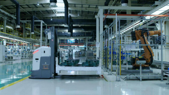 圖:大眾物流叉車AGV用于汽車動力總成工廠