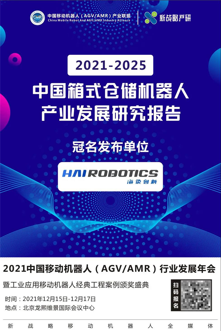為了進一步探析箱式倉儲移動機器人發展現狀,2021年12月15-17日,在由中國移動機器人(AGV/AMR)產業聯盟主辦的“2021 中國移動機器人(AGV/AMR)行業發展年會”上,《2021-2025中國箱式倉儲機器人產業發展研究報告》將正式對外發布!