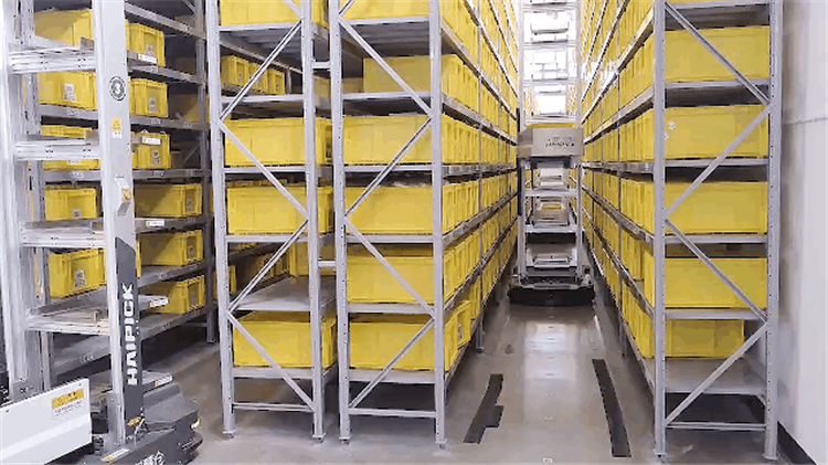 2017年,國自料箱機器人PICKING作為STAR SYSTEM的核心組成部分,在美國史泰博工廠正式亮相,PICKING可直接鎖定目標SKU,并且一次可收集至少5個目標SKU箱,且從貨架區到工作站只需走一次,PICKING AGV還具有一個自由旋轉的裝載平臺,在叉卸貨時無需轉彎,極大降低了存儲貨架區巷道寬度的要求。Picking至今已在史泰博各倉庫進行了廣泛、長期應用,其累計已有超過千臺長時間穩定運行。
