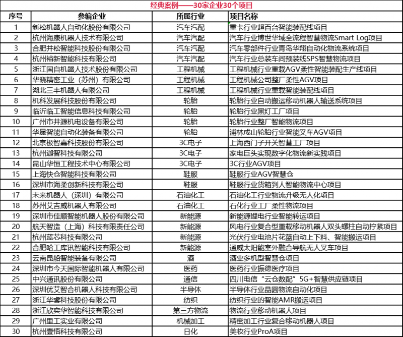 為了更好的宣導(dǎo)和展示從91年國產(chǎn)AGV落地應(yīng)用以來在各行各業(yè)的經(jīng)典案例,以及將案例與技術(shù)相結(jié)合,凸顯行業(yè)前瞻技術(shù)的論文集萃。中國移動機(jī)器人(AGV/AMR)產(chǎn)業(yè)聯(lián)盟與新戰(zhàn)略移動機(jī)器人產(chǎn)業(yè)研究所聯(lián)合出版了《中國工業(yè)應(yīng)用移動機(jī)器人經(jīng)典案例匯編及技術(shù)發(fā)展論文集(2021版)》。具體入選案例名錄如下: