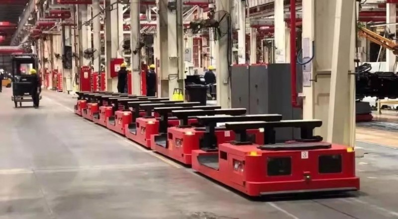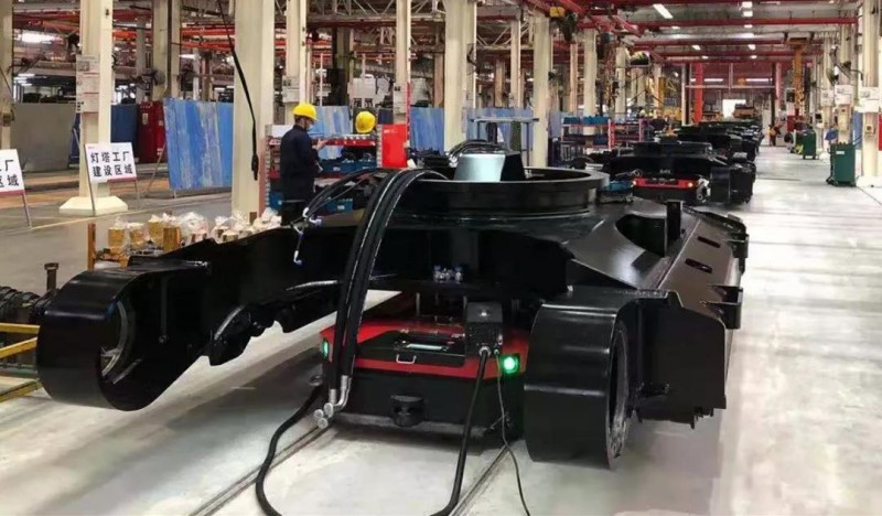 大挖工廠使用國自20噸重載AGV+30噸RGV,串聯起產線裝配工位,實現上線、下線全程智能化調度。