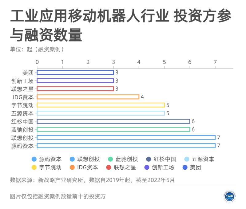 圖片:工業移動機器人行業十大資本方參與融資情況【統計時間為2019年-2022年5月,不完全統計】